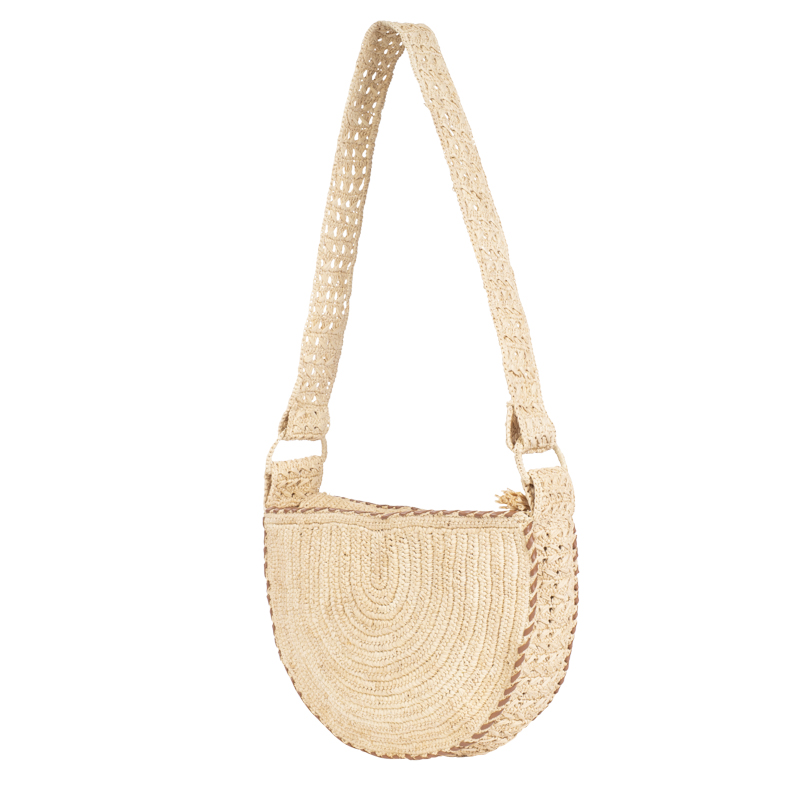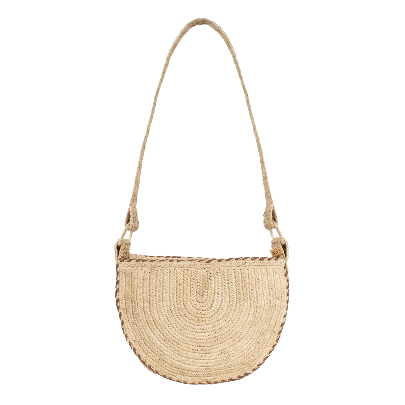 Besace en raphia avec bordures tressées en cuir, à l’allure bohème et chic.