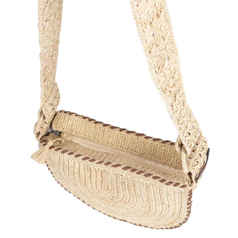 | Caractéristiques | Raphia crocheté, bandoulière raphia, fermeture zip, doublure intérieure |