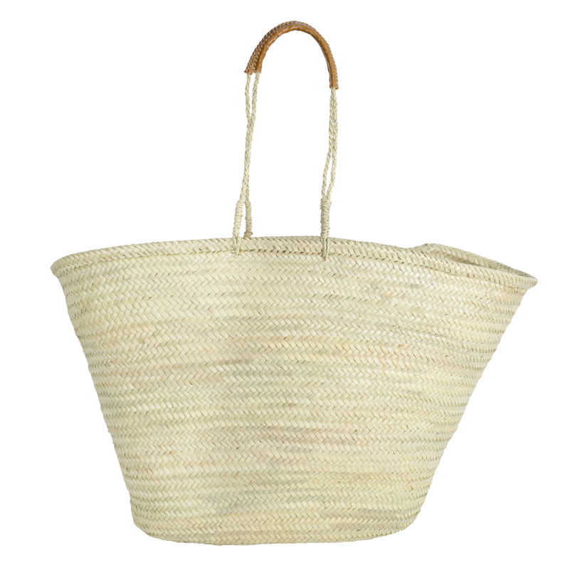 Découvrez le grand panier Sahar, un panier spacieux et élégant fabriqué en palme naturelle, idéal pour vos courses ou comme décoration intérieure.