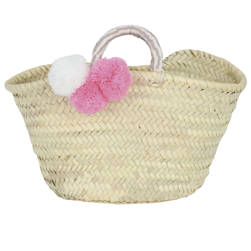 Ajoutez une touche de couleur et de fun à votre espace avec le petit panier Timi, orné de pompons roses et blancs. Parfait pour la décoration et le rangement.