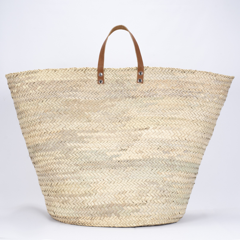 Panier Akour – grand et élégant, parfait pour le rangement. Fabriqué en palme naturelle de qualité avec poignées en cuir. Découvrez ce panier spacieux et polyvalent dès aujourd’hui.