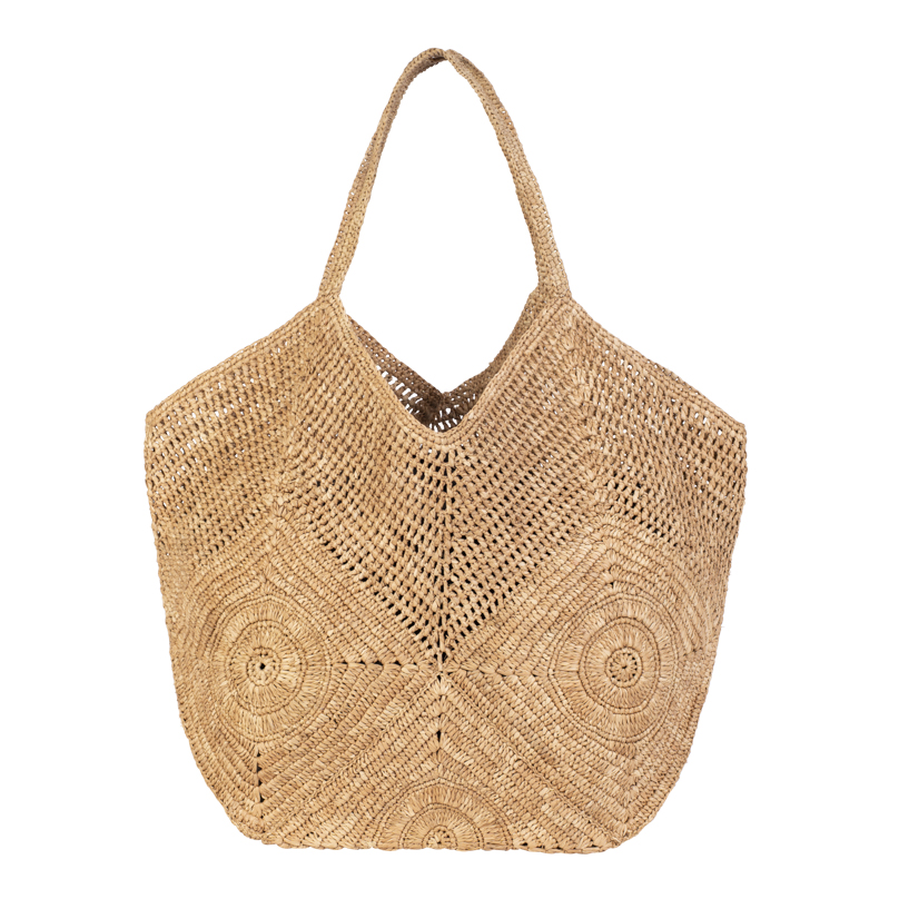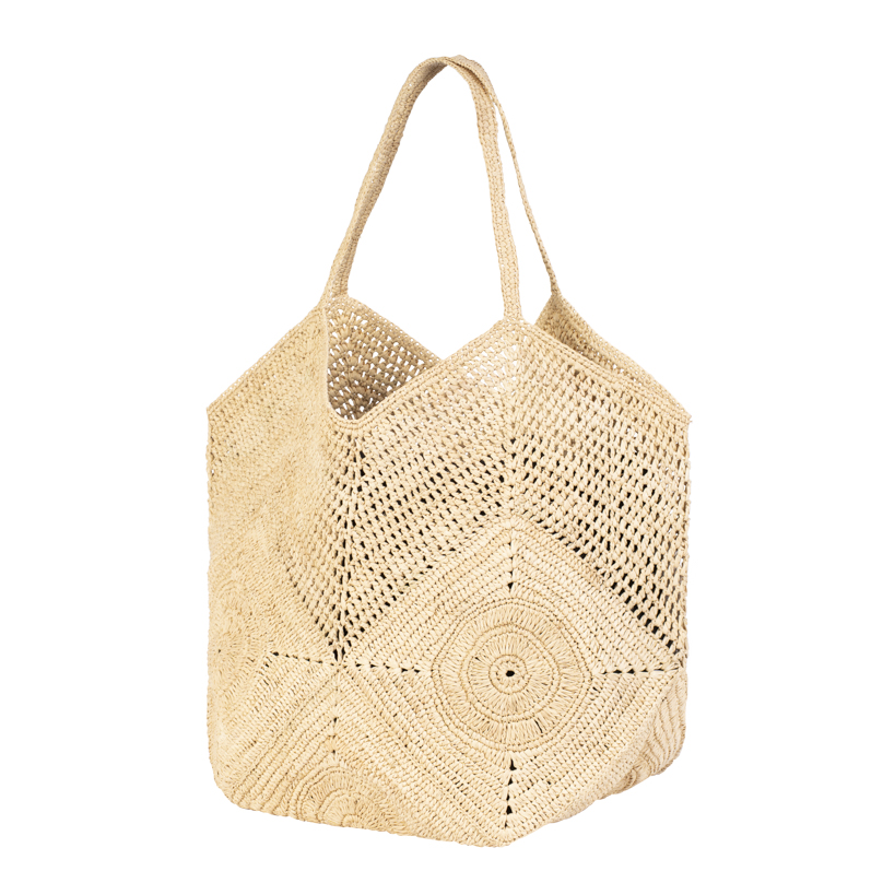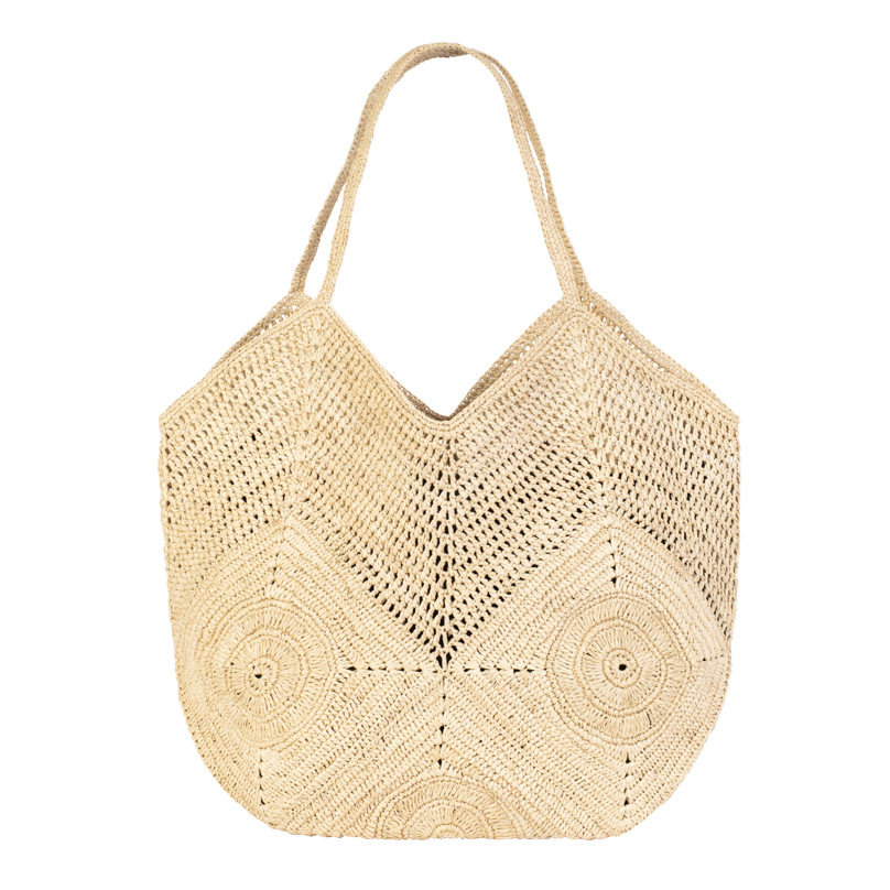 | Caractéristiques | Raphia crocheté, porte-monnaie assorti au sac avec attache amovible |