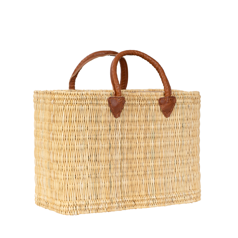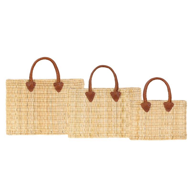 Le cabas x3 Satouf mêle structure en jonc tressé, pochon intérieur en tissu et poignées rondes en cuir. Élégant, spacieux et idéal au quotidien.