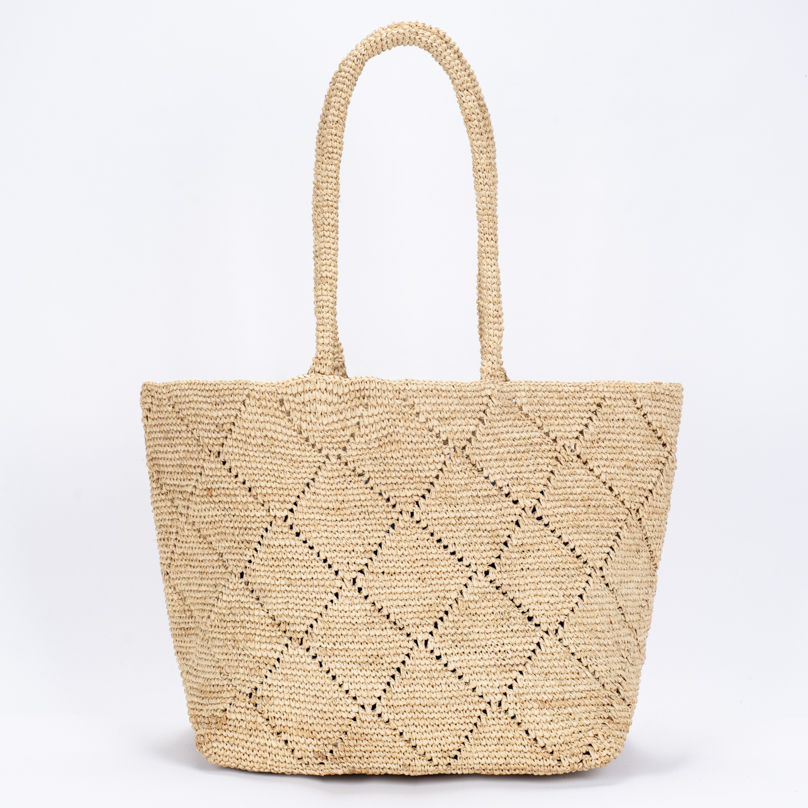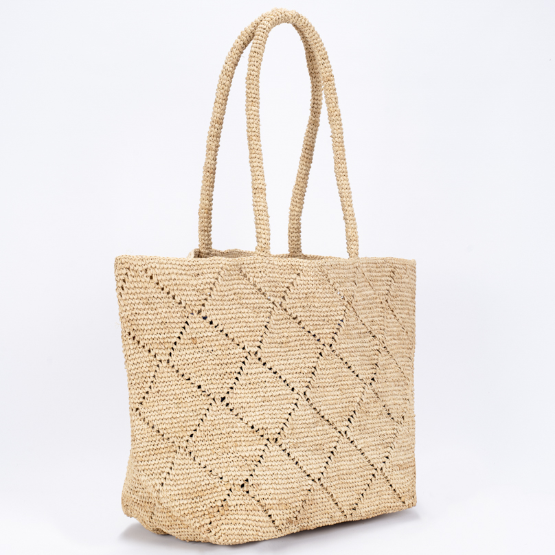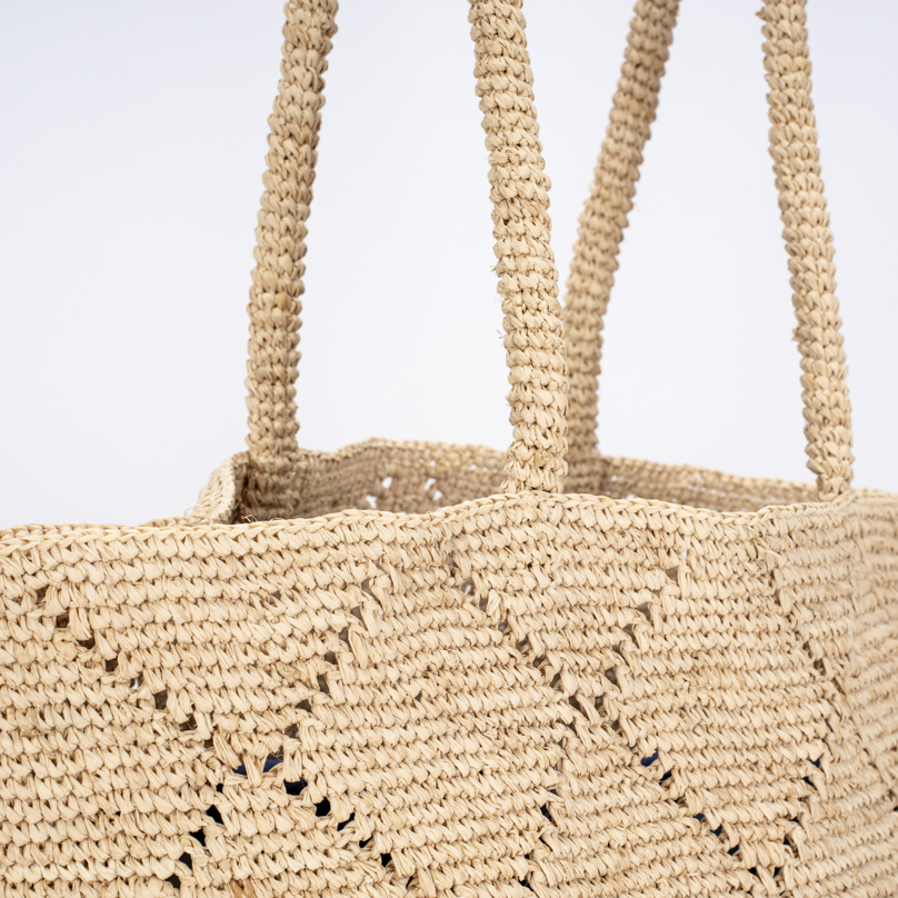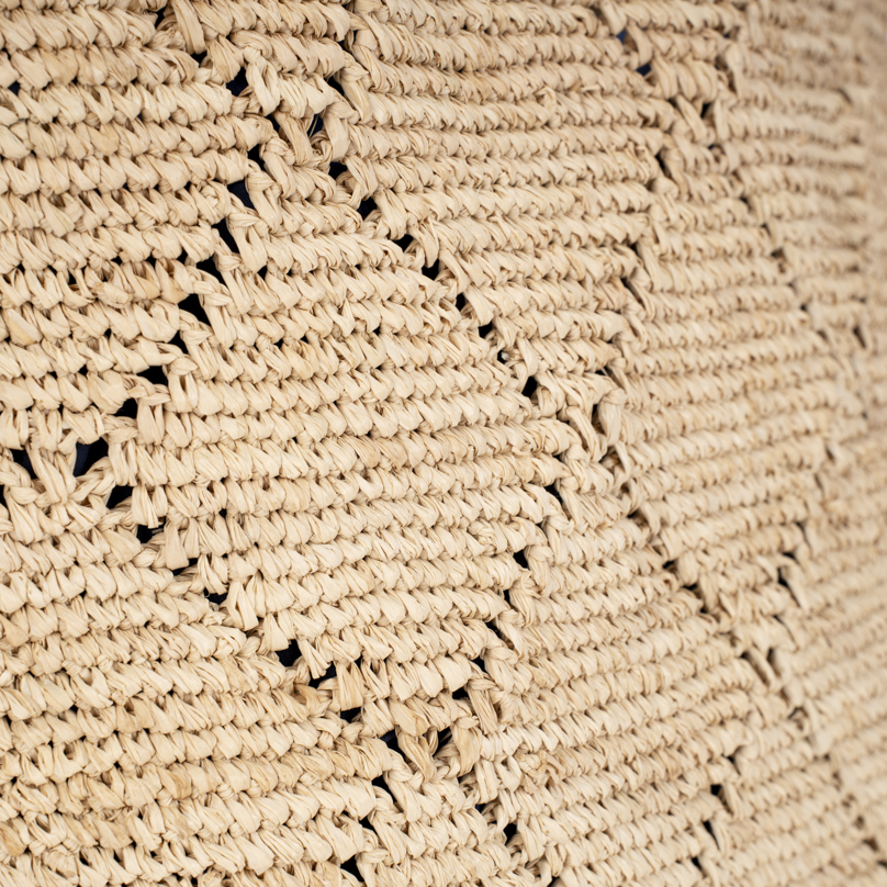 | Caractéristiques | Raphia crocheté, anses raphia |