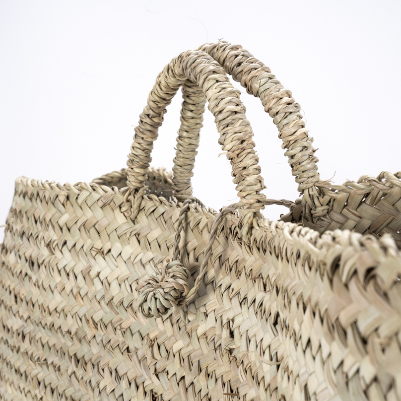 Découvrez le panier Mellal, un chef-d'œuvre d'artisanat en palme naturelle. Chaque pièce est soigneusement tressée à la main, offrant un design à la fois robuste et élégant. Ce panier polyvalent est idéal pour une variété d'utilisations, que ce soit pour faire vos courses, une journée à la plage ou comme un élégant accessoire de mode. Sa forme généreuse et ses matériaux naturels en font un choix parfait pour ceux qui apprécient l'authenticité et la durabilité.