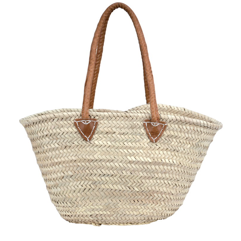 Panier Tensift – élégance naturelle et praticité avec des anses rondes en cuir. Fabriqué en palme naturelle de qualité, idéal pour toutes vos sorties. Découvrez-le dès aujourd’hui.