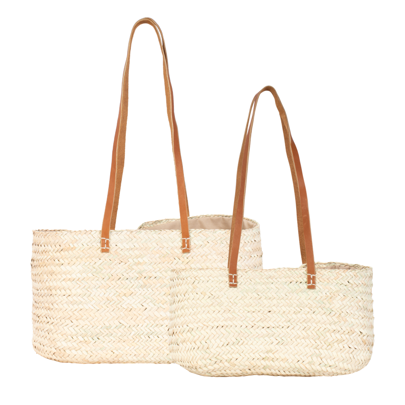 Panier Sala en palme tressée, doté de longues anses en cuir. Léger, souple et pratique pour vos courses ou sorties estivales.