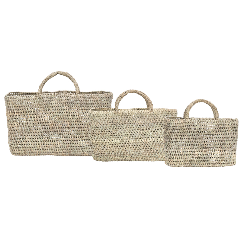 Panier Majorelle en fibre naturelle tressée à la main. Élégant et pratique, idéal pour toutes vos sorties. Disponible en lot de 3 tailles.