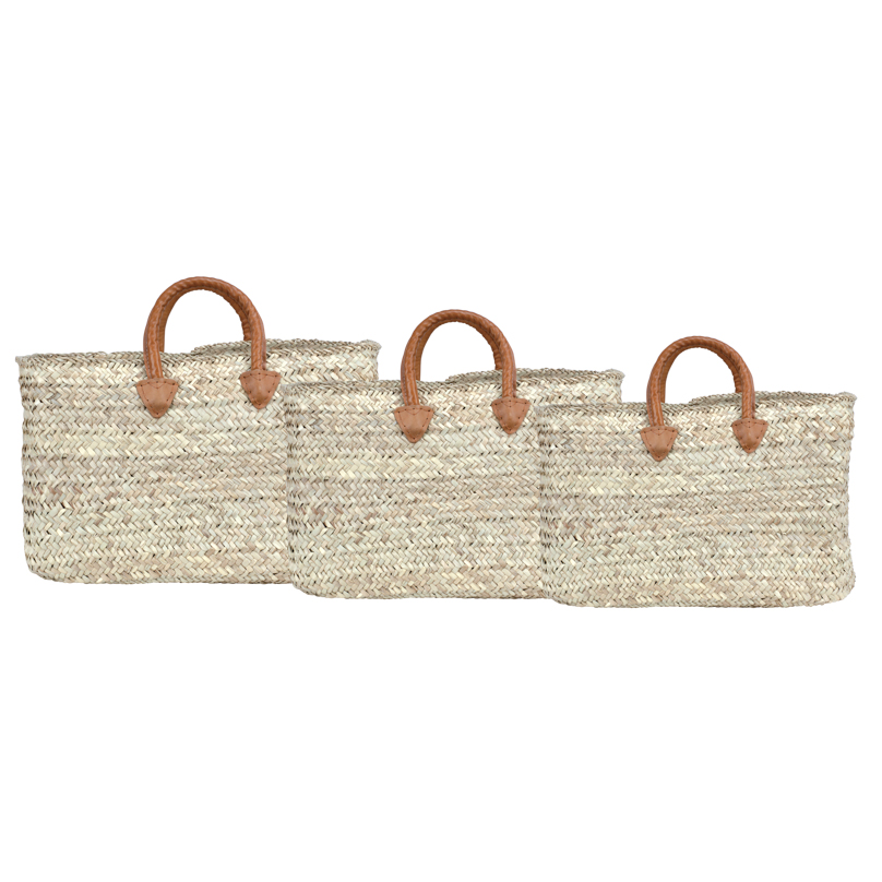 Panier Nafaa naturel : Alliant simplicité et fonctionnalité, ce panier en palme naturelle est parfait pour toutes vos courses et activités quotidiennes. Ses poignées en cuir ajoutent une touche d'élégance tout en assurant une prise en main confortable. Son tressage dense offre durabilité et résistance. Idéal pour ceux qui recherchent un accessoire pratique et esthétique.