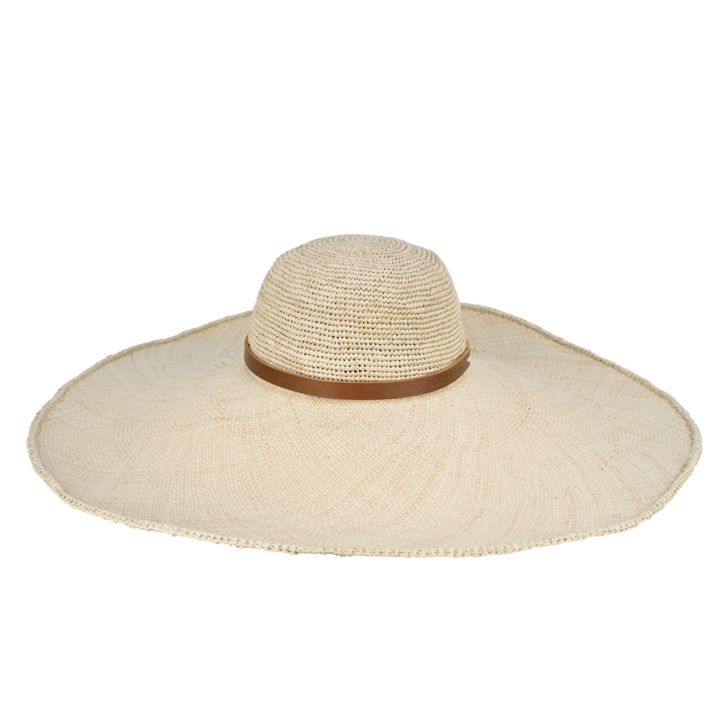 Chapeau Elena avec un large bord de 20 cm, parfait pour vous protéger du soleil de manière élégante.