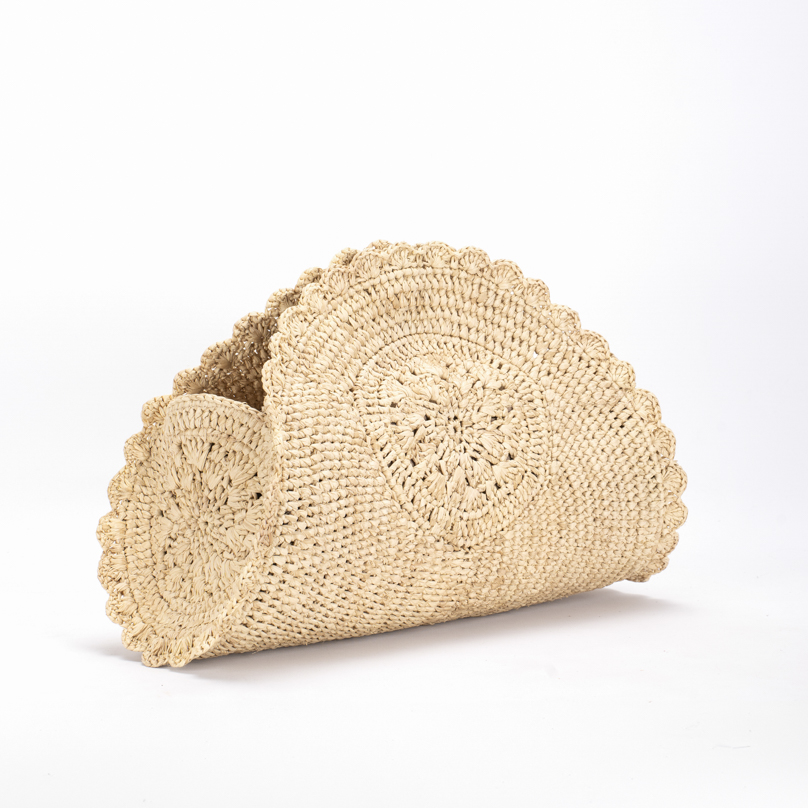 | Caractéristiques | Raphia crocheté, fermeture magnet, doublure intérieure |