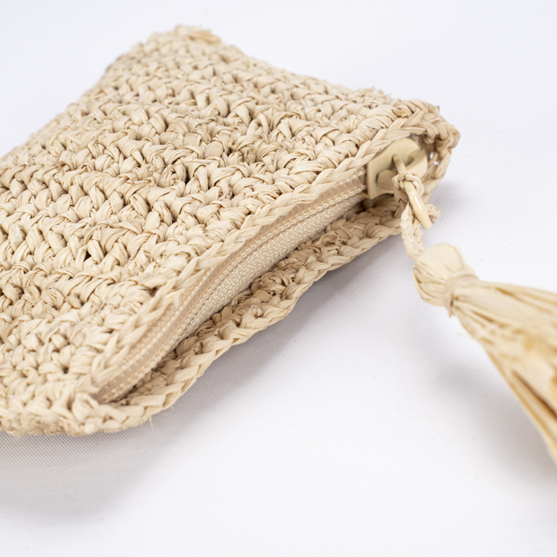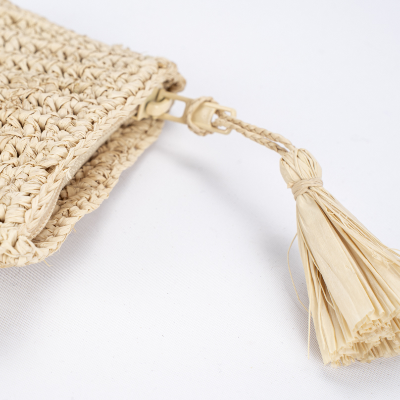 | Caractéristiques | Raphia crocheté, fermeture zip, doublure intérieure |