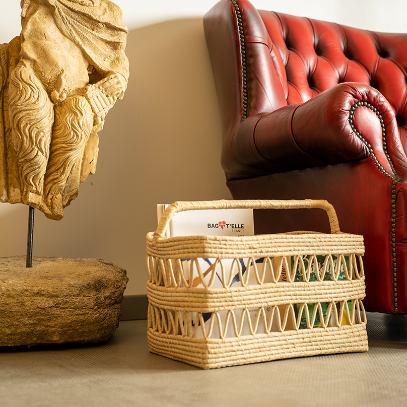 Le Porte-revue en raphia naturel, parfait pour organiser vos magazines avec style. Un ajout fonctionnel et chic à votre intérieur