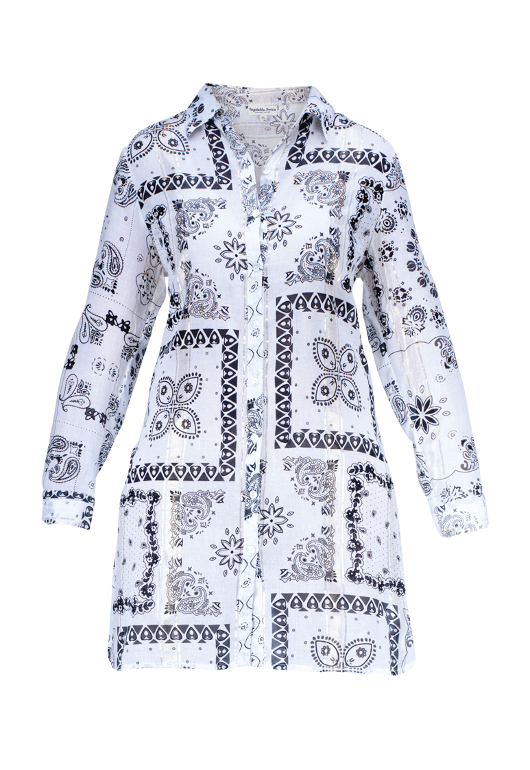 Robe mi-longue. Col italien. Détails dorés, argentés ou cuivrés.
