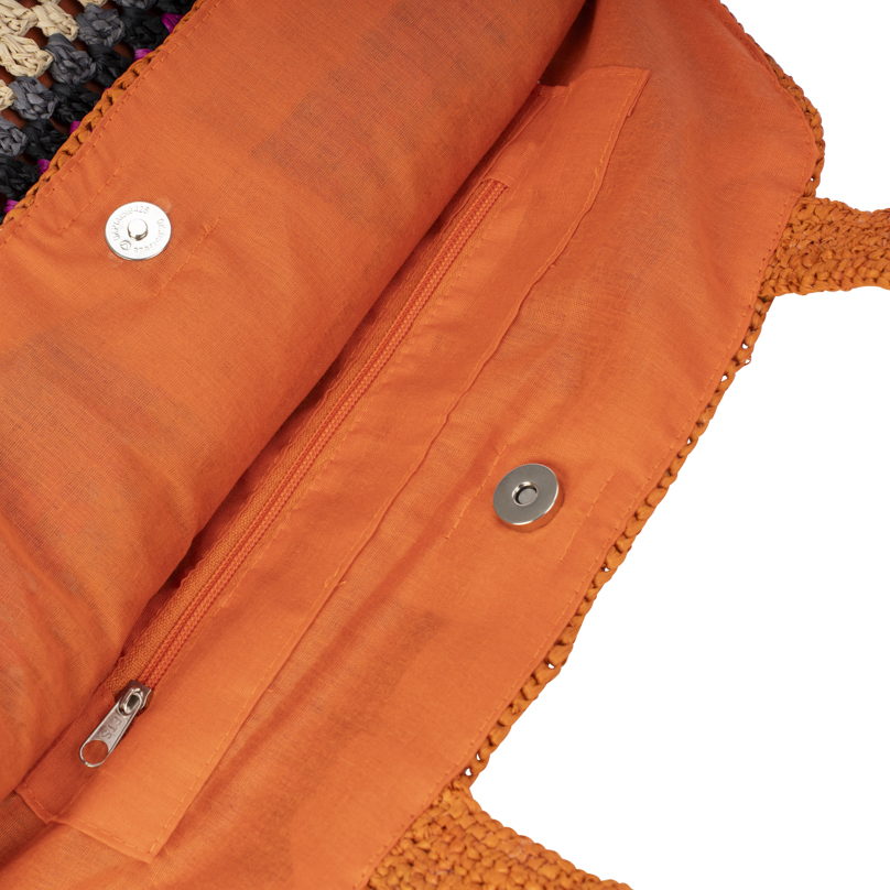 | Caractéristiques | Raphia crocheté, anses raphia, fermeture magnet, doublure intérieure |