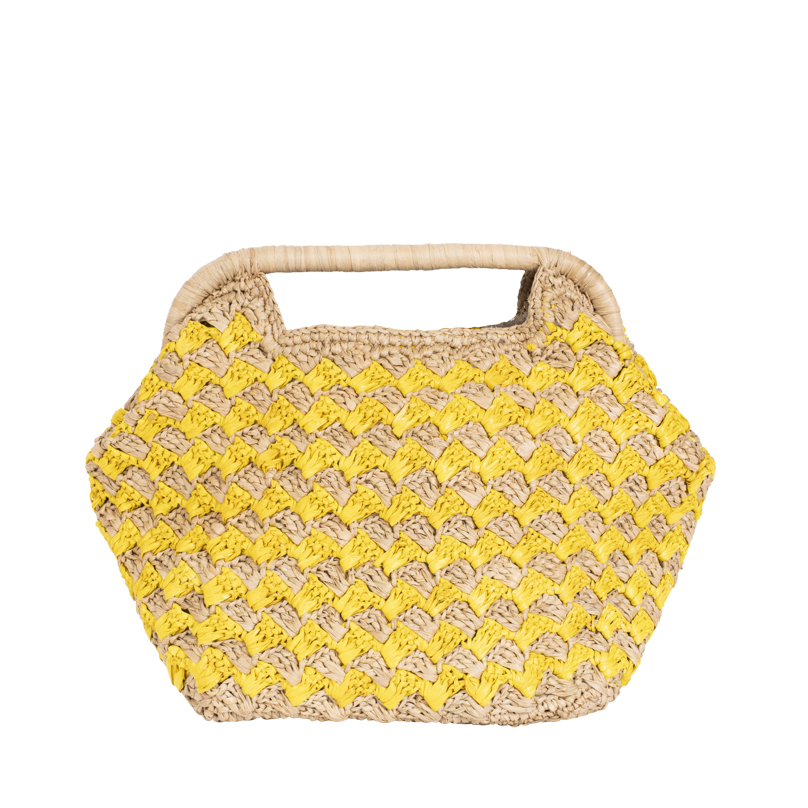 | Caractéristiques | Raphia crocheté, poignées raphia, fermeture à pinces |